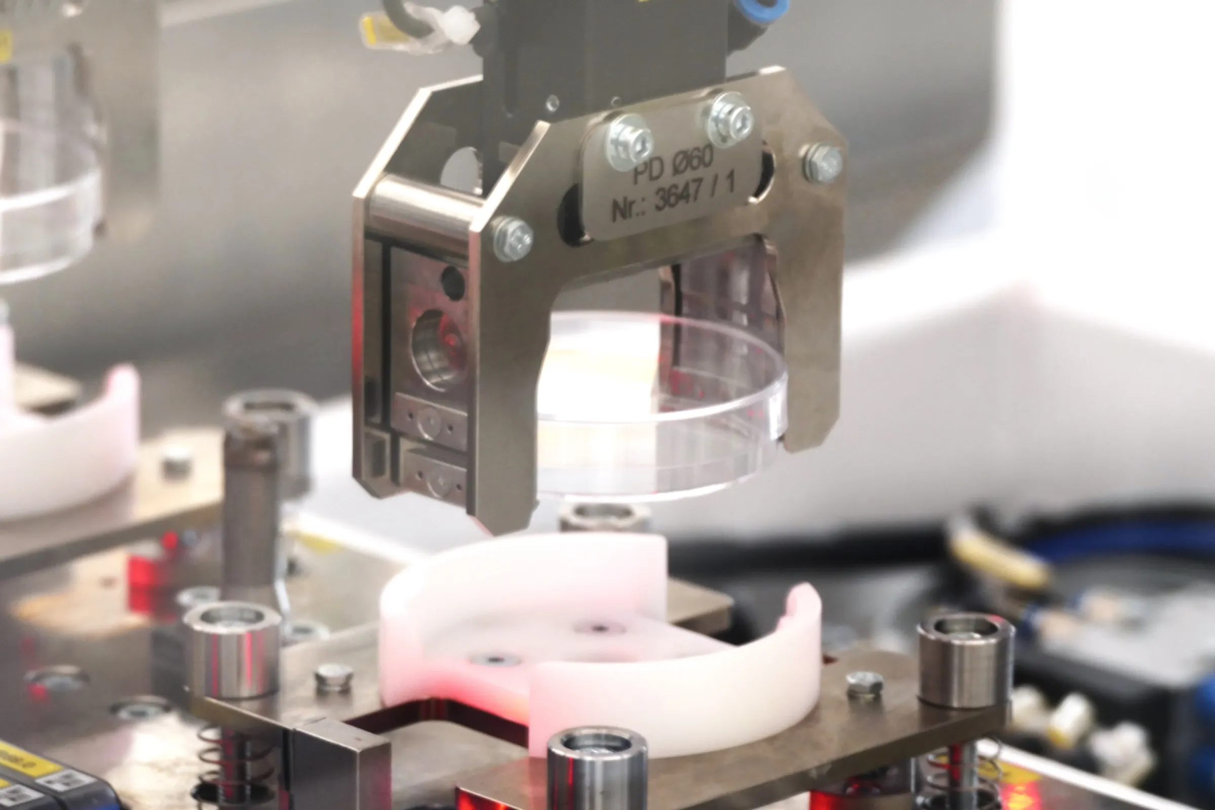 With HEKUdish we offer a platform that fully meets all current market requirements for processing Petri Dishes: With a flexible design the system can be configured for specific products such as Contact Dishes and Cell Culture Dishes, providing you with a customized solution. The standard solution can be combined with various molds and injection molding machines from 2+2 to 16+16, from semi-automated to fully-automated.