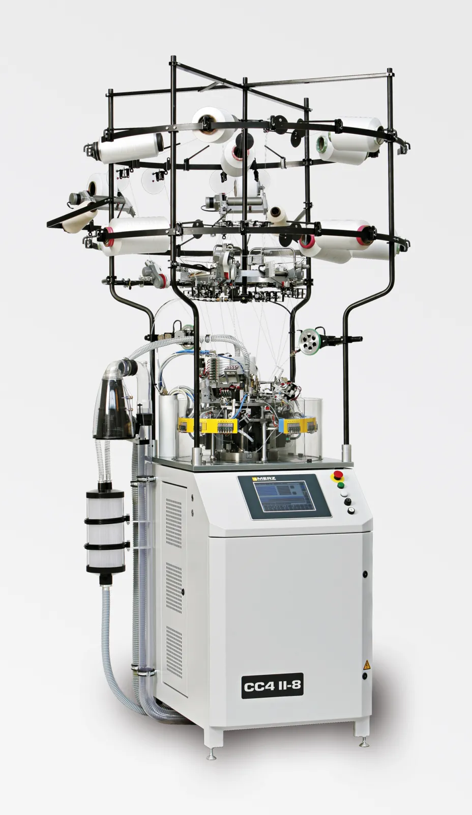 The CC4 II-8 machine is the latest circular knitting machine generation for the production of medical compression stockings with reciprocated heel (and toe) of CCL I, II and III according to German RAL standard.